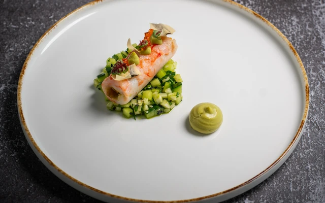 Shrimp with avocado mousse