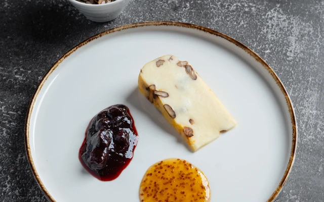 s červeným mělnickým vínem, hořčičnou marmeládou a kmínovými chipsy